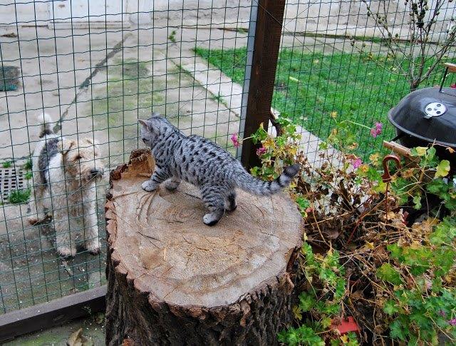 Dělám vše, co můžu. Snažím sebe i prostředí, ve kterém žijeme společně s našimi svěřenci, stále zdokonalovat. Od jara máme novou 80 m2 rozlehlou voliéru navazující na vchod do domu, kde moje kočky mohou trávit spoustu času venku na vzduchu. Bylo také velké dilema, zda voliéru ano či ne. Jsem si vědoma toho, že všude volně žijí jiné kočky, které jistě nemají tu nejlepší péči. Ale pro volný pohyb mých koček na sluníčku rozhodlo, že rodiče mají foxteriérku Draki, která kočky nenávidí. Takže se voliéra konstruovala tak, aby nebyla nikde ani skulinka kvůli zabezpečení mých koček před Draki. Současně je Draki velmi užitečná, protože u voliéry tráví zatím celé dny i noci a venkovní kočky nemají nejmenší šanci se bez újmy na zdraví dostat ani na naši zahradu. Jsem si jistá, že to dobře vědí, a ani se o to nijak nesnaží. Doufám, že Draki její posedlost kočkami dlouho vydrží.