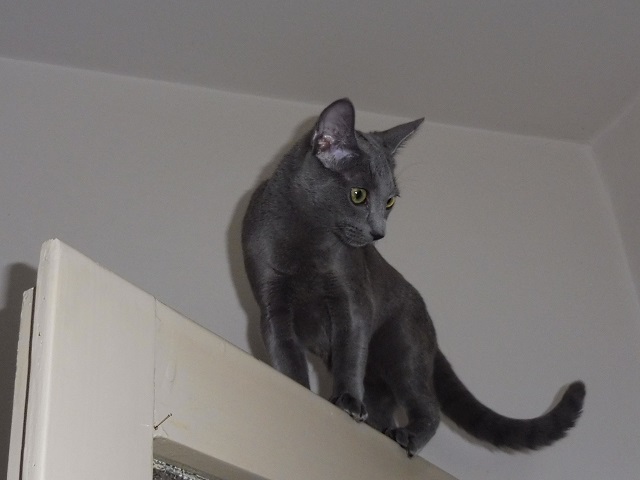 To bylo tak. Jsem už velké a silné kotě, takže si mohu dovolit řádně rozvíjet své sportovní nadání. Dávám přednost atletice, ale ani gymnastika mi není cizí. Už dlouho jsem si chtěla vyzkoušet kladinu, ale nemohla jsem najít odpovídající objekt. A pak mě to napadlo – dveře! Zdárně jsem překonala skříňku, poličku s knihami, cestou jsem zkřivila konstrukci stínítka na lampě a už to bylo. Ladně jsem balancovala k velké radosti DNŽ na dveřích a prošla jsem bez jediného zaváhání tam i zpět. Nyní jsem tam jako doma.