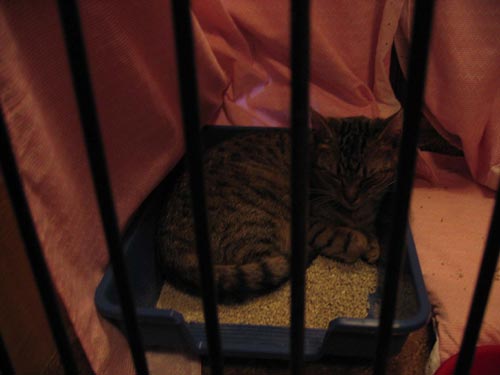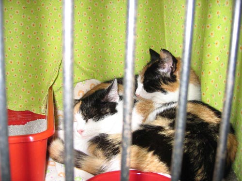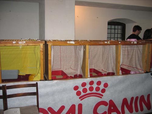 Do tvrze pouštěli jen po pěti lidech, aby se vevnitř dalo dýchat a lidi se neušlapali. První klec u vchodu byla prázdná, druhá byla prázdná, třetí... :o)))) V tu chvíli se mě zhostila radost. Asi v desáté kleci se choulila kočička v záchůdku. A vedle ní dvě krásné tříbarevné čičiny (maminka s dcerou), které se nakonec dočkaly své rodinky. Smutný osud měla i mourovatá Nelinka, měla za sebou operaci páteře.