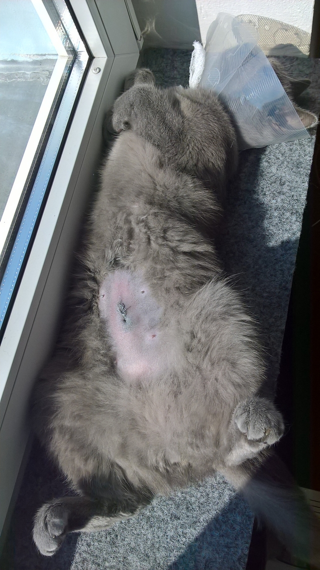 Bublinka to zvládla dobře, límec potřeba nebyl a za týden běhala jak dřív a i přes zákaz vycházek si je vykňourala. Zážitek hrozný, ale lepší než dvacet let, x-krát ročně řešit mrouskání, březost,porod a koťátka.
