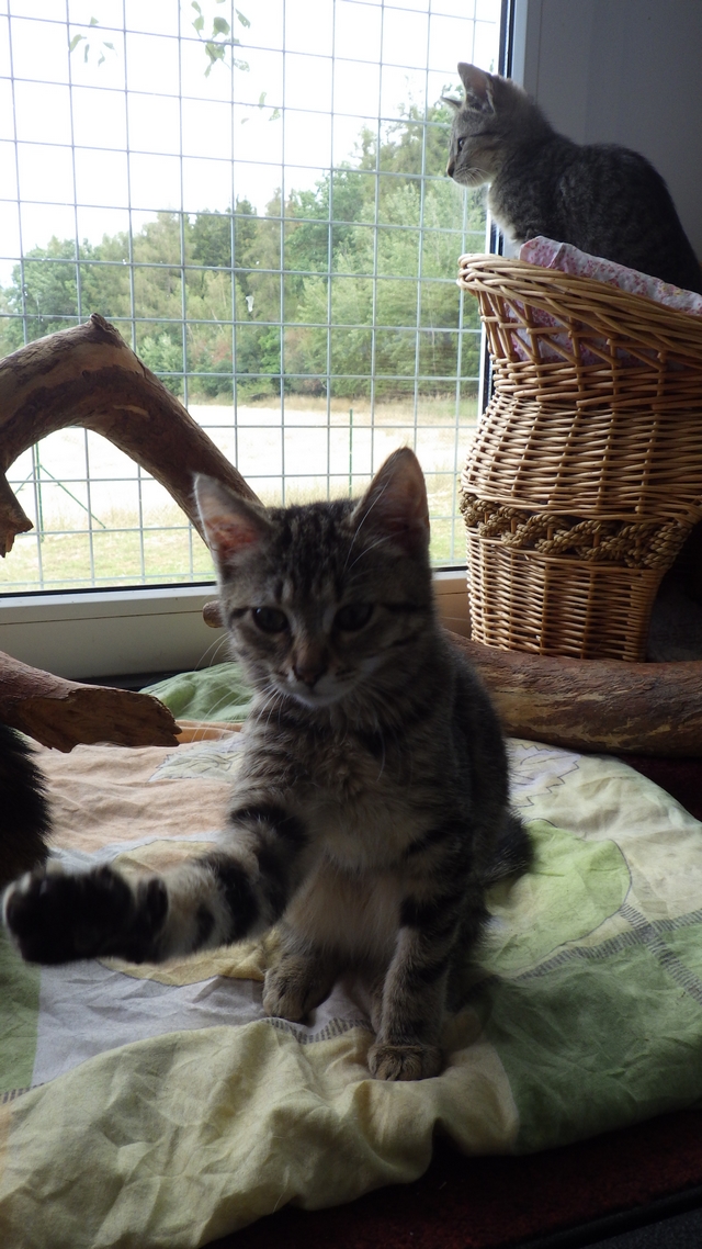 Na první pohled, deset koček. Sem a tam, nakonec možná třináct. Od tří měsíců po starší kočky. Mourovaté, převážně. Dala jsem se s paní do řeči. Říkala, že se přestěhovali, že tady je líp, že jsou na samotě a mají tady klid. Říkala, že mají smlouvu s městem. Prý to bylo náročné, ale podařilo se... Vojtovi se tam moc líbilo. Bral jednu kočičku po druhé a pokaždé se zeptal: "Co tuhle, tuhle taky nemůžeme? A jak dlouho tu budeme? A už musíme? Néé, já ještě nechci, mami, přijedeme zase zítra?" Paní se usmála a řiká: "Vemte si jednoho pejska a běžte se projít." ... "Jéééé, hurá, hurá, půjdeme, půjdeme."